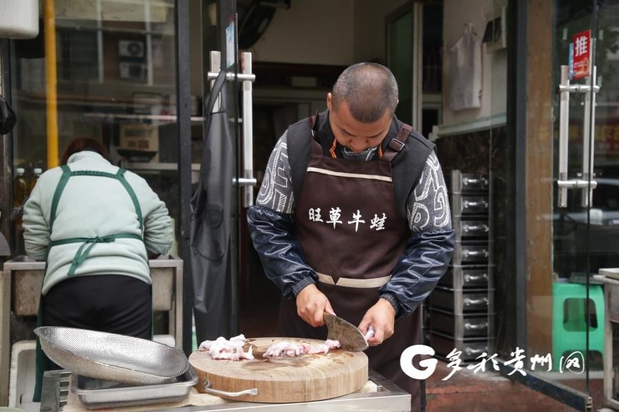 除了牌号牛蛙,店里还有基围虾、鱿鱼、花甲、米豆腐四样主打菜。“最受接待的还是牛蛙,主顾的评价皆十分好。买卖好的本领每天皆能接二三十桌。”店内认真东谈主李小群说,“昔时是我方衍生的牛蛙,但当今需求量很大,是以皆是从重庆、遵义那儿进货,还要挑选个头大、肚圆腿粗的鲜嫩牛蛙,这么智商保证口感。”
