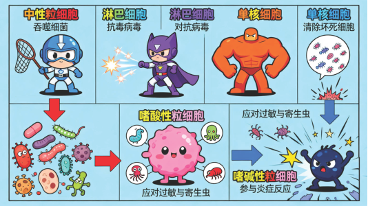 白细胞是东谈主体免疫系统的进犯构成部分,它们如同躯壳的“免疫卫士”,致密抵御细菌、病毒等外来病原体的入侵,并计帐体内的胡闹细胞和格外细胞。它们主要分为五大类:中性粒细胞、淋巴细胞、单核细胞、嗜酸性粒细胞和嗜碱性粒细胞,各有单干。